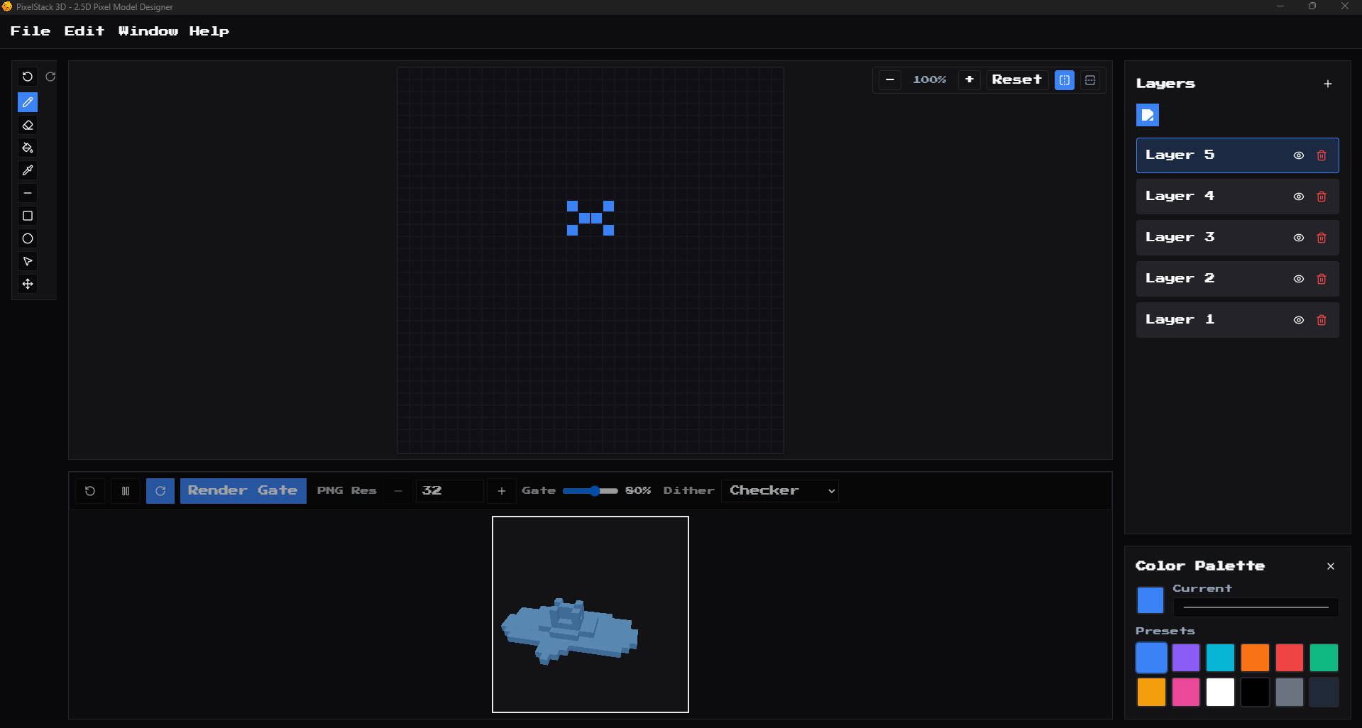 PixelStack 3D is a creative layer-based pixel-to-3D design tool that transforms your 2D pixel art into dynamic 3D models. Build depth and volume layer by layer, visualize your creations in real time, and export them for use in games or 3D projects. Perfect for artists, game developers, and pixel enthusiasts who want to bring their sprites to life in three dimensions.