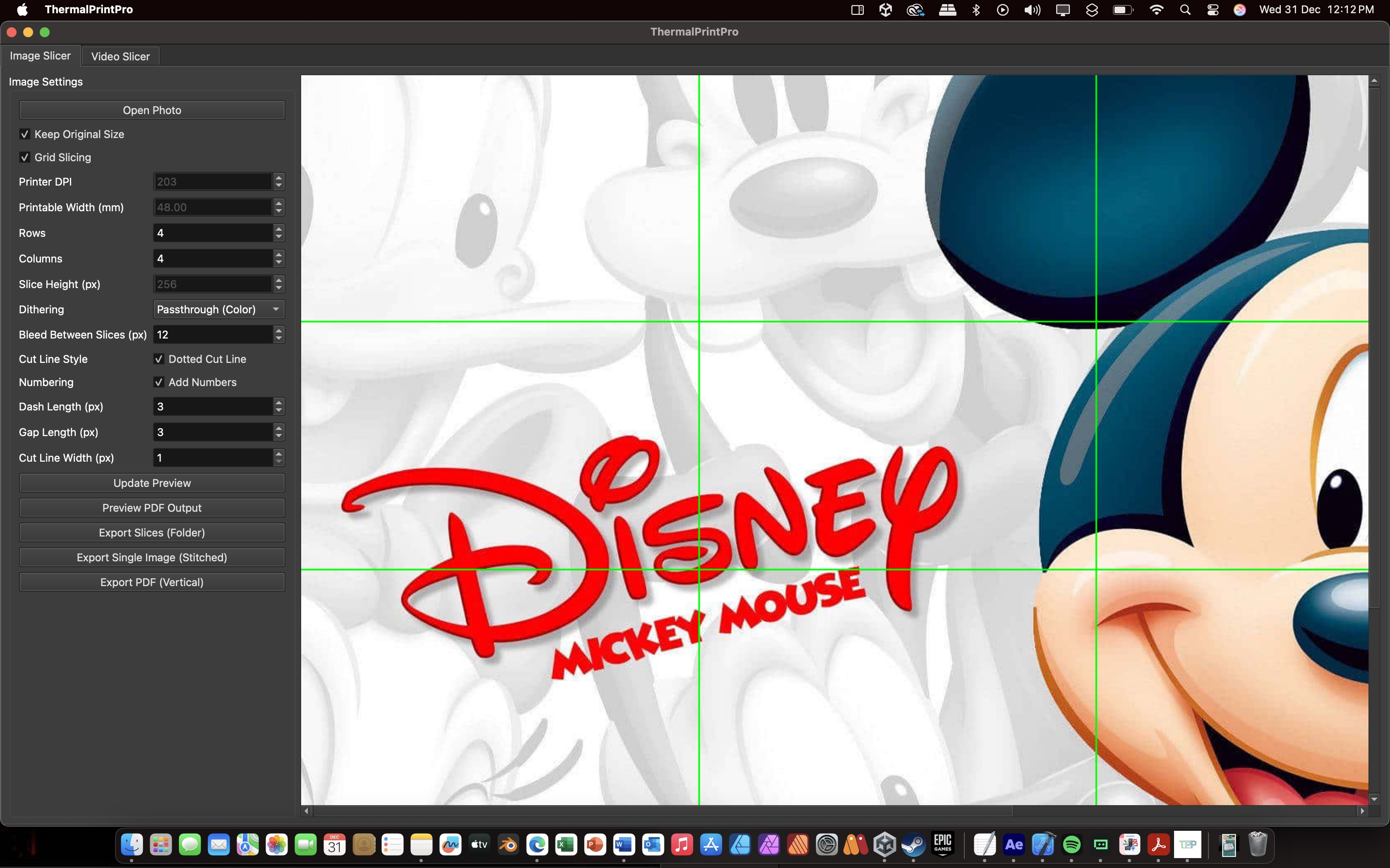 ThermalPrintPro is a cross‑platform desktop tool for preparing images and videos for thermal printers. It converts content into printer‑friendly slices with precise control over width, DPI, dithering, cut lines, and bleed spacing. You can work with photos or import videos, select a frame range via a timeline, and export the processed result either as a stitched single image or as a multi‑page PDF where each slice is placed on its own page. The app supports vertical slicing and grid tiling, live previews, and per‑slice numbering for easier handling. It is built with PySide6 and Pillow, integrates OpenCV for video, and provides clean exports optimized for common thermal printer widths. Purchase includes executable file for macOS , Windows EXE